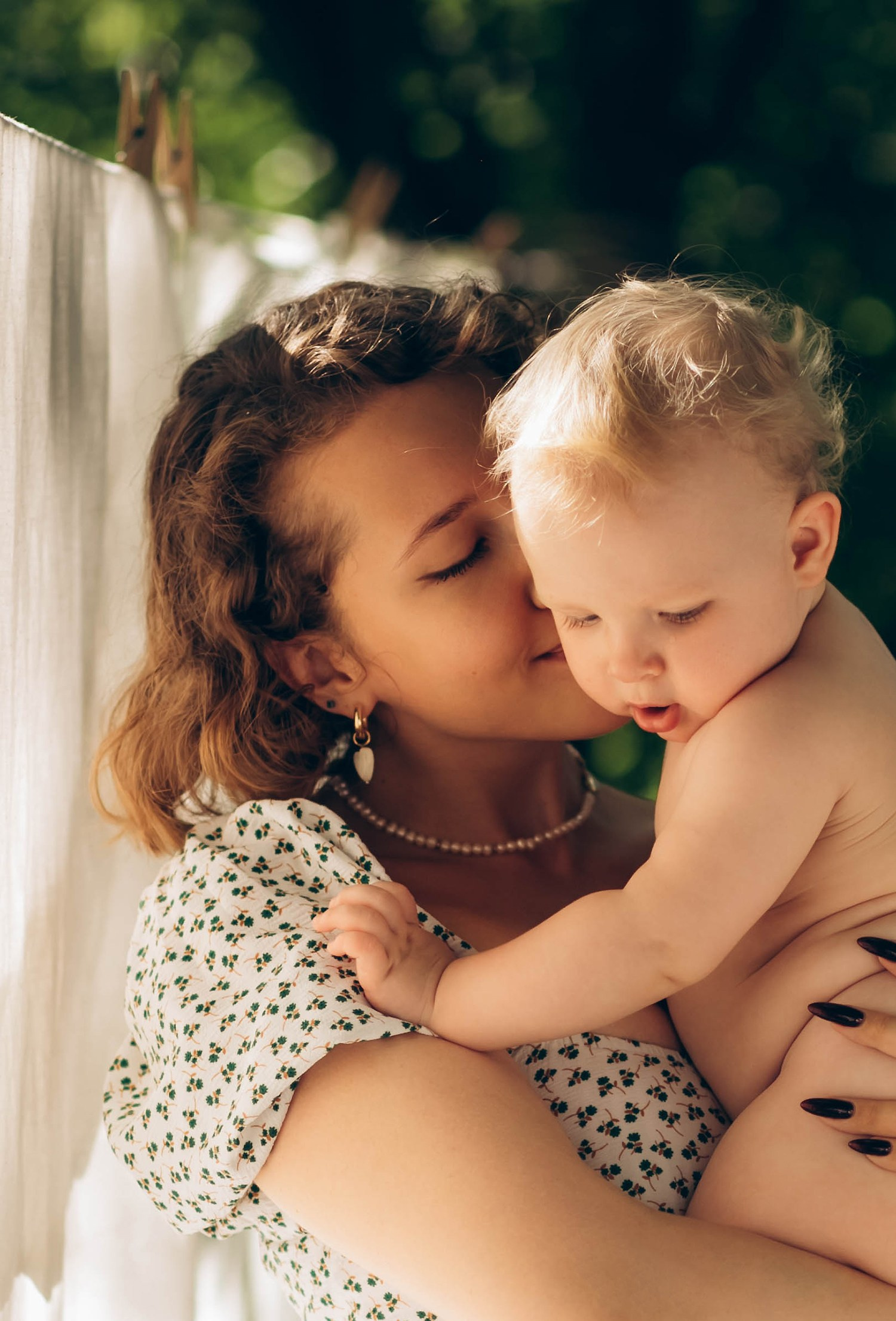 Мама с дочкой в фотостудии c пионами Spacejobs